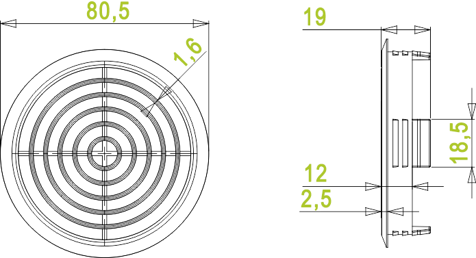 Die Installation erfolgt schnell und unkompliziert. Der Flansch verfügt über drei Rillen, sodass das Gitter sicher und fest in der vorgesehenen Öffnung sitzt und problemlos eingesetzt werden kann. Bei Bedarf lässt es sich zusätzlich verkleben, um einen noch dauerhaft stabileren Halt zu gewährleisten – ideal sowohl für Neubauten als auch zum Nachträglichen Einbau in bestehende Möbel.